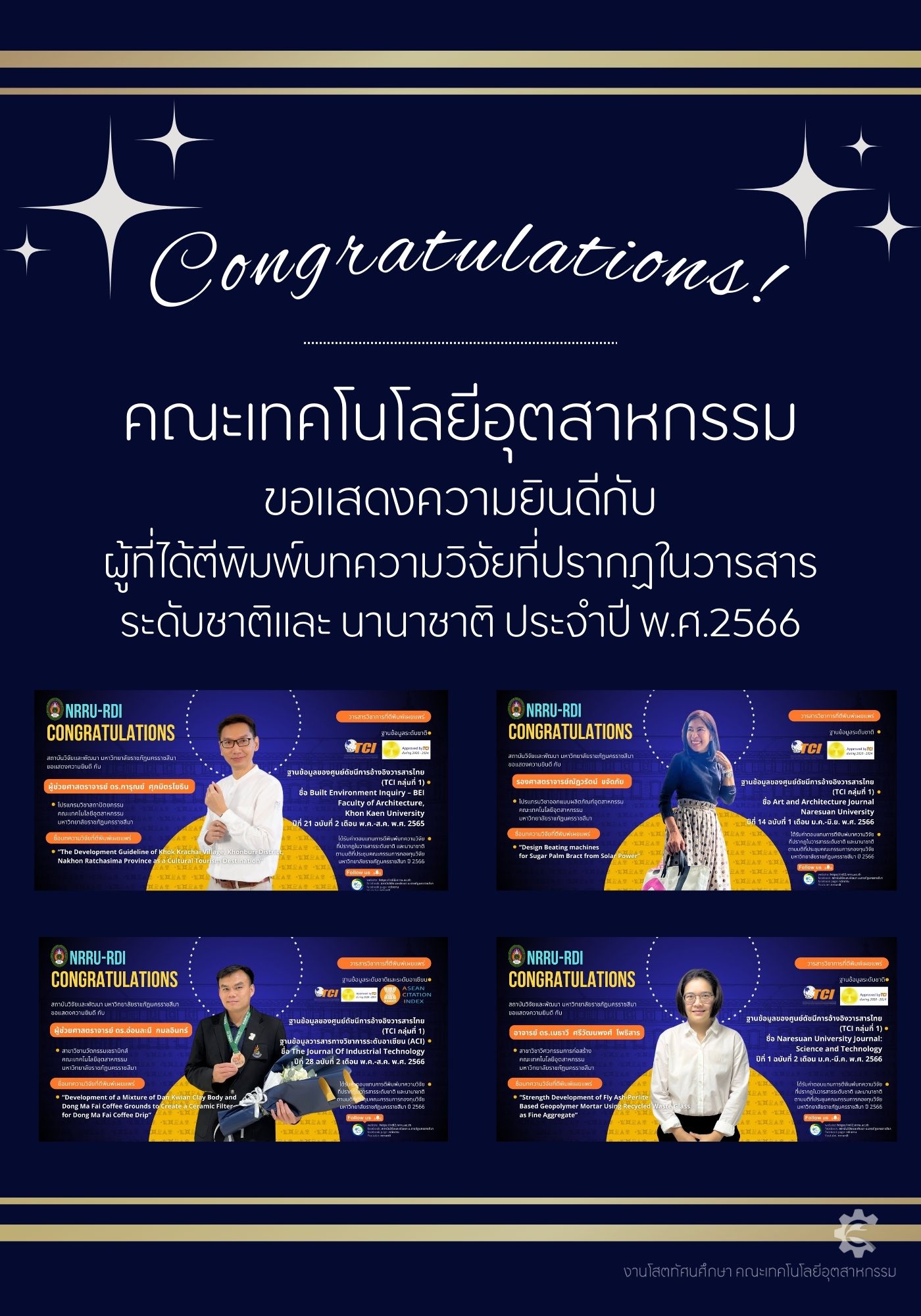คณะเทคโนโลยีอุตสาหกรรม ขอแสดงความยินดีกับผู้ที่ได้ตีพิมพ์บทความวิจัยที่ปรากฏในวารสารระดับชาติและนานาชาติ ประจำปี พ.ศ.2566